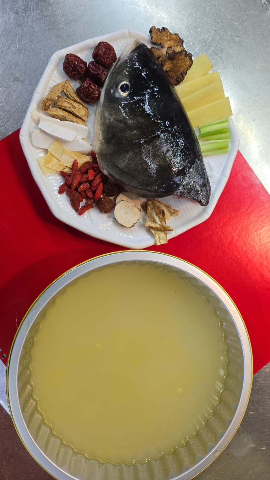 🐟藥膳大魚頭鍋 ❤️選用足2斤大魚頭,配上川芎白芷等藥膳,餚製成濃稠藥膳魚湯,每一口都濃郁鮮味 ❤️冬天飲用非常滋補暖身 重量:2斤魚頭 價錢:$238份